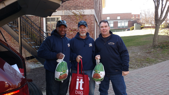 bringing Thanksgiving baskets to struggling families and elders in Plymouth and